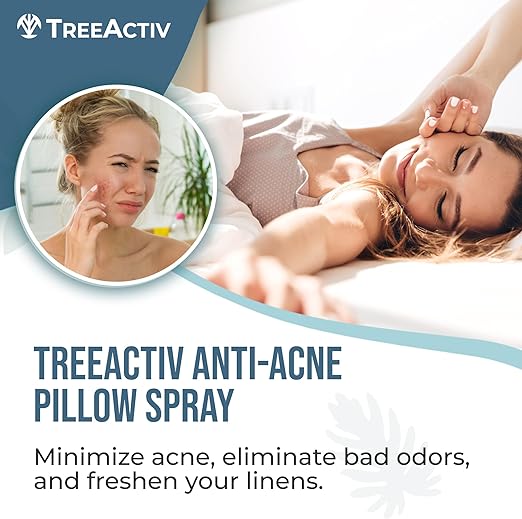 Revitalize your bedtime routine with TreeActiv's Anti-Acne Pillow Spray. A calming blend of essential oils for fresh, clean bedding and a peaceful atmosphere. Try it now!